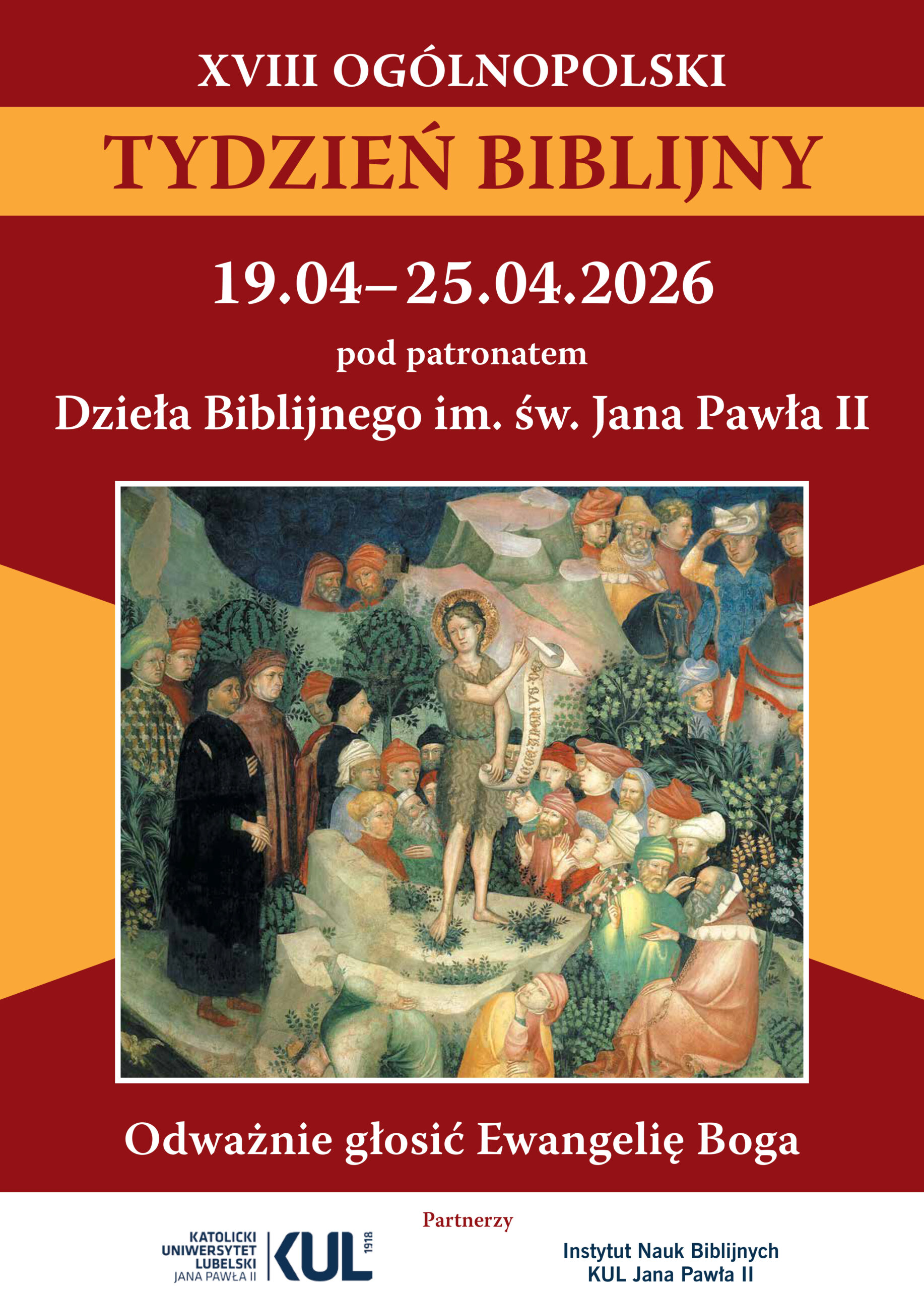 Pod hasłem „Odważnie głosić Ewangelię Boga”, od 19 do 25 kwietnia, w Kościele katolickim w Polsce już po raz 18. obchodzony będzie Ogólnopolski Tydzień Biblijny. Rozpoczyna go Narodowe Czytanie Pisma Świętego. Przedmiotem wspólnotowej lektury będą tym razem Pierwszy i Drugi List św. Pawła do Tesaloniczan, Pierwszy i Drugi List św. Pawła do Tymoteusza oraz List św. Pawła do Tytusa.